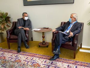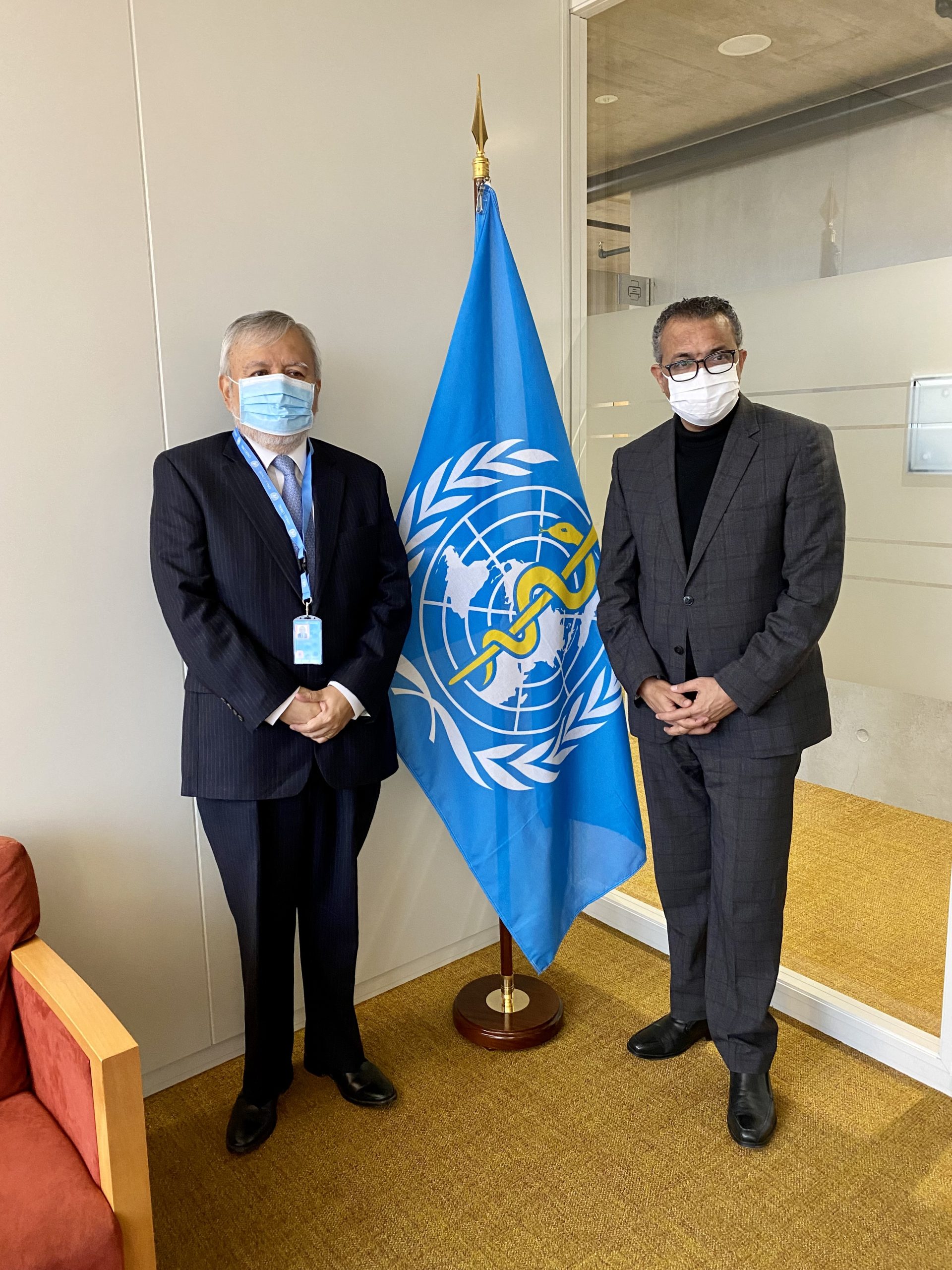El día de hoy, el Director General de la Organización Mundial de Salud (OMS), doctor Tedros Adhanom Ghebreyesus, recibió al Embajador Luis Chuquihuara Chil, en el marco de una visita protocolar en ocasión de su reciente designación como Representante Permanente del Perú ante los Organismos Internacionales con sede en Ginebra.