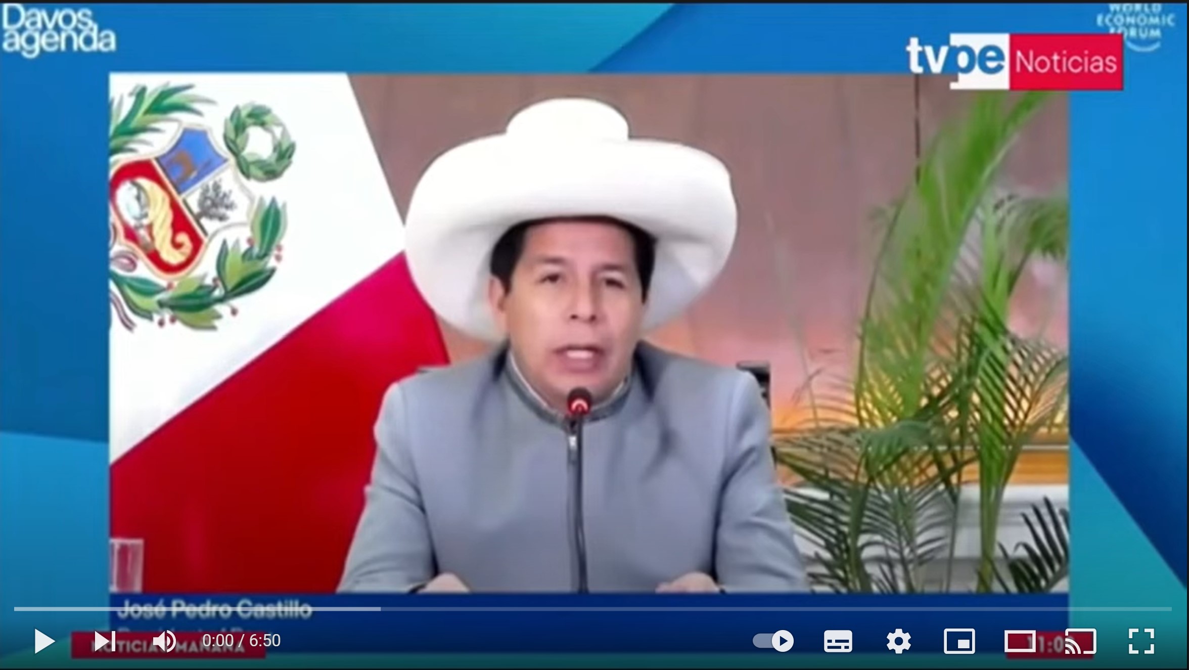 En sesión plenaria virtual de Jefes de Estado de América Latina, organizado por el Foro Económico Mundial (WEF), el Presidente del Perú, Pedro Castillo Terrones, dio a conocer su visión sobre las prioridades del país tras la pandemia; expuso las politicas públicas en marcha y los principales resultados alcanzados en materia económica durante los primeros meses de su gobierno, y finalmente presentó temas que requieren atención por parte de una América Latina unida.