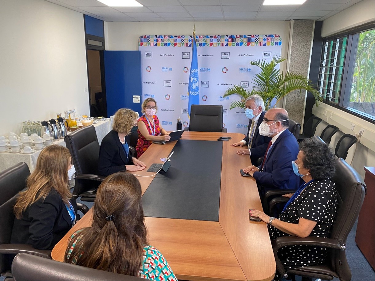 Durante la última Asamblea de las Naciones Unidas para el Medio Ambiente (UNEA), celebrada en la ciudad de Nairobi, a inicios de este mes, la delegación peruana, encabezada por el Viceministro de Gestión Ambiental, Mariano Castro, y el Embajador Luis Chuquihuara Chil, Representante Permanente del Perú ante el Programa de las Naciones Unidas para el Medio Ambiente (PNUMA), sostuvo una reunión de trabajo con la Directora Ejecutiva del PNUMA, señora Inger Andersen.